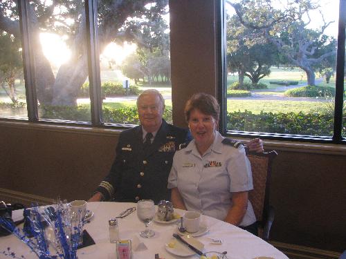 The dinner was well attended on the Gold Side BM1 Chase Wyatt & his wife, on the Silver Side USCG Aux. Dist. 7 Commodore Judith Hudson, Div 11 DCDR Jesse Scott & Past DCDR Karen Miller. Scott Birdwell provided some very good sax music once again. Thanks to the staff who coordinated the event & a special thanks to Judy Deeley who collated all of the past documents. She also provided a moving slide show as the event progressed. Needless to stay striking many memories of past members & events.
