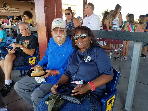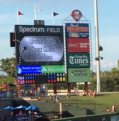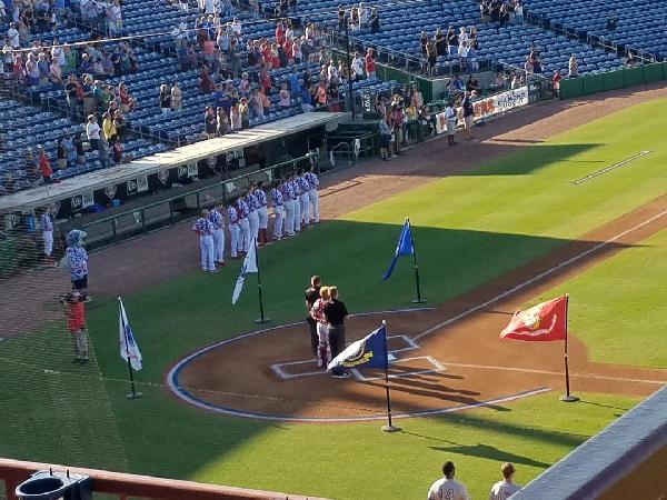The Flotilla had an enjoyable evening at Spectrum Field once again, thanks to Rob Bonnem setting it up. We had 36 members and friends for the evening with plenty of food and libation. It was Armed Forces Night so there was a military presence throughout the evening. There were military vehicles in the parking lot on display.