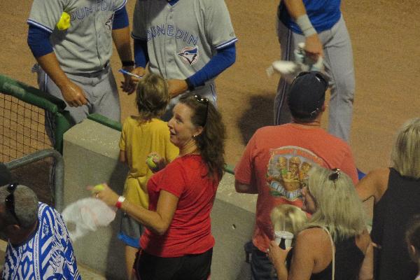 We also watched a minor league baseball game. The Threshers (3) and Blue Jays (0)..Afterwards there was a great fire works display. Great time was had by one and all..