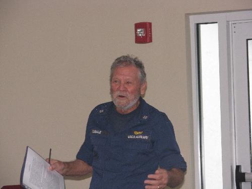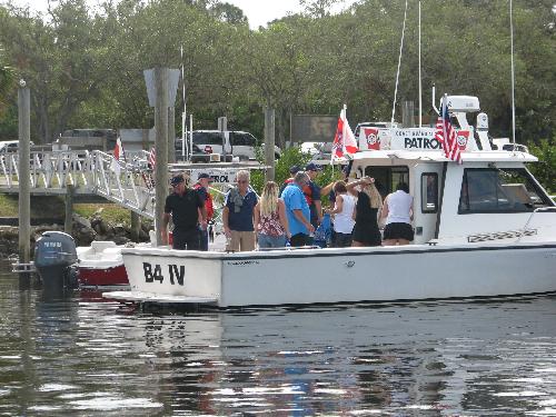 The ceremony on 28 October 2017 speaks volumes of the high regard Bob Holden was held. We had 7 Auxiliary vessels, Coast Guard 45 boat from Station Sand Key & a C-130 Aircraft flyover from Coast Guard Air Station Cleawater. We rendezvoused at Tarpon Springs Park on the Anclote River. The family boarded Aux Vessel B4-IV coxswain Harvey Prior, crew Kristi Mackey, Wally Weakley & Buddy Casale. We departed the park escorted by the 7 Auxiliary vessels we would rendezvous with the Coast Guard 45 boat offshore at 28 08N, 082 54W with the vessels at rest a ceremony was performed aboard B4-IV then the ashes were displaced along with a wreath and flowers by the family.