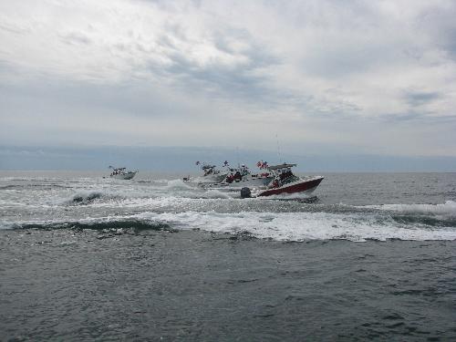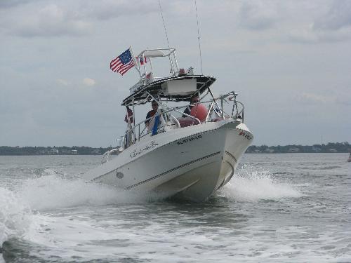 Bob's sons boarding VFC Kristi Mackey aboard B4-IV Harvey Prior at helm