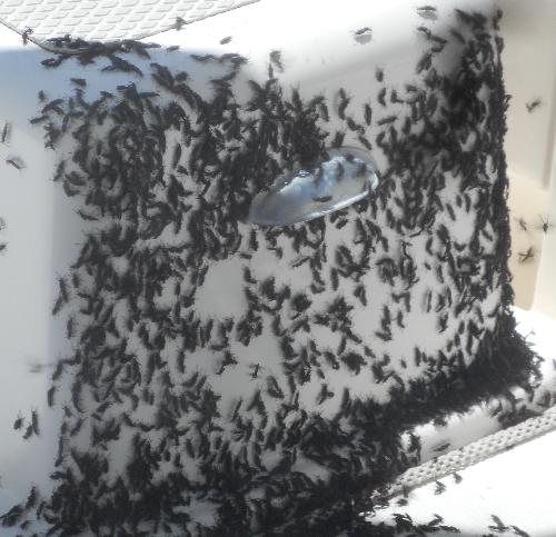 There were 2 incidents where private vessels entered the training area and had to be escorted out. We had to pause training while a cruise ship Carnival Princess exited Port of Tampa. The weather for the training exercises was excellent however we had one evolution which required us to anchor and be a stationary asset. After a short time being stationary we were inundated with " Lovebugs" which covered our decks, windows etc. See pictures below.
