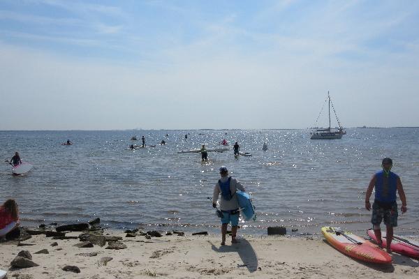 8 Paddle the Bay Headquarters giving instructions entrees Boaters receiving instructions on the race before starting