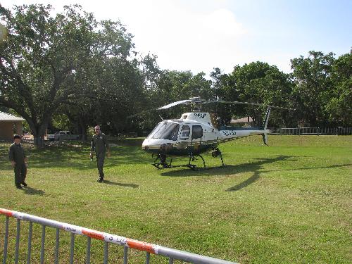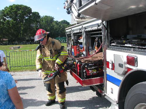 Dunedin Fireman explaining the "Jaws of Life" Pinellas Sheriff Helicopter