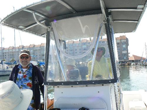 Buddy Casale with Jack Kuhlmann leaving Dunedin Marina Carolyn Hughes at the helm Bud Heiser bow watch
