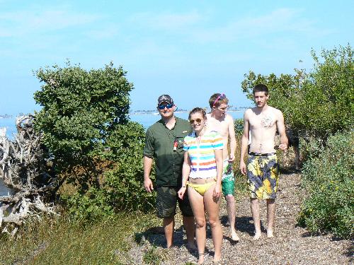 Kristi Mackey & family approaching island Buddy hunting wild life?
