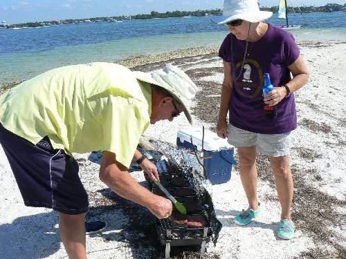 Jack & Brenda Kuhlmann setting up grill The mess hall is open......
